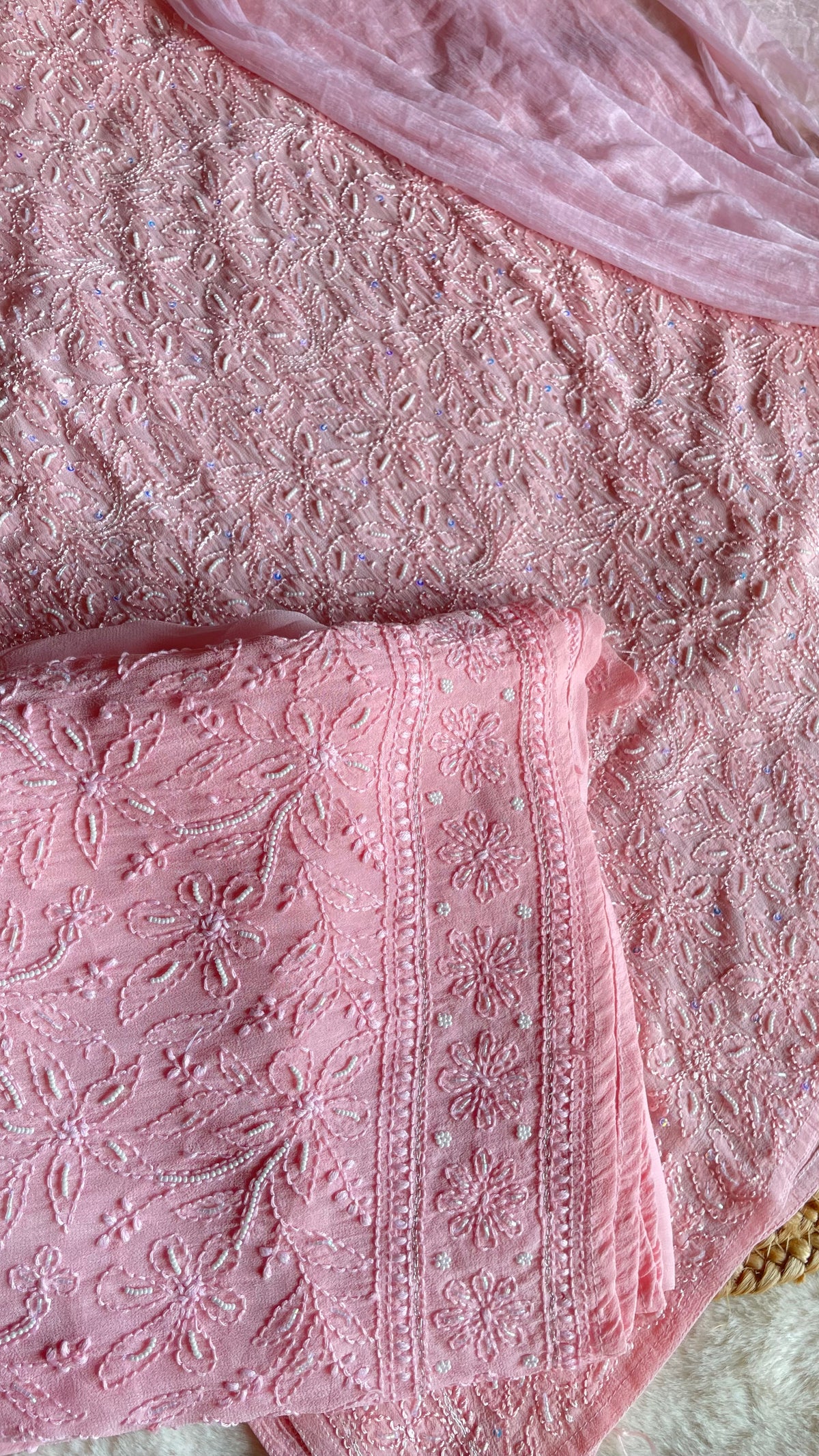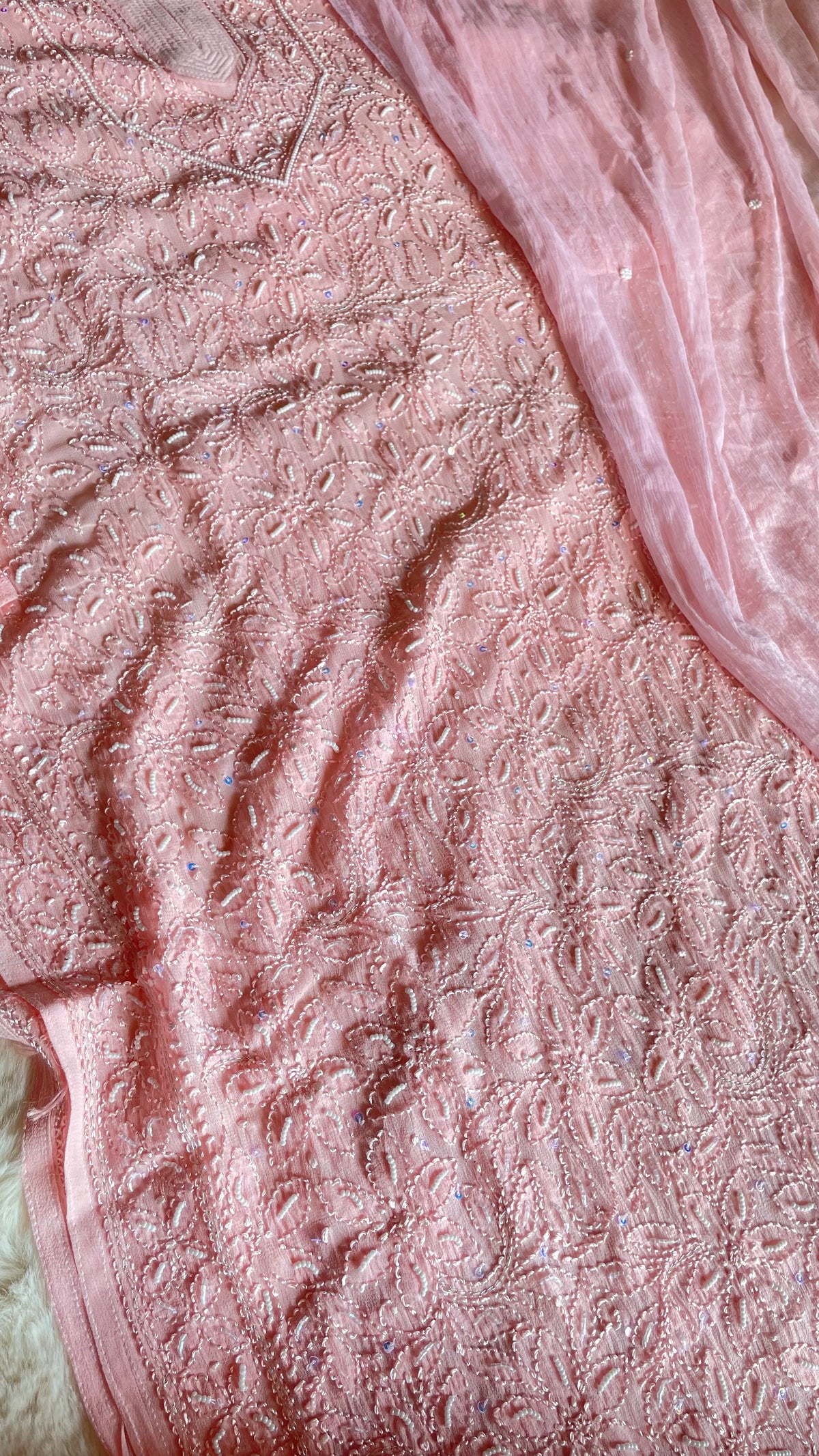 Type of Work: Handmade chikankari with pearl, cardana & sequins add-ons