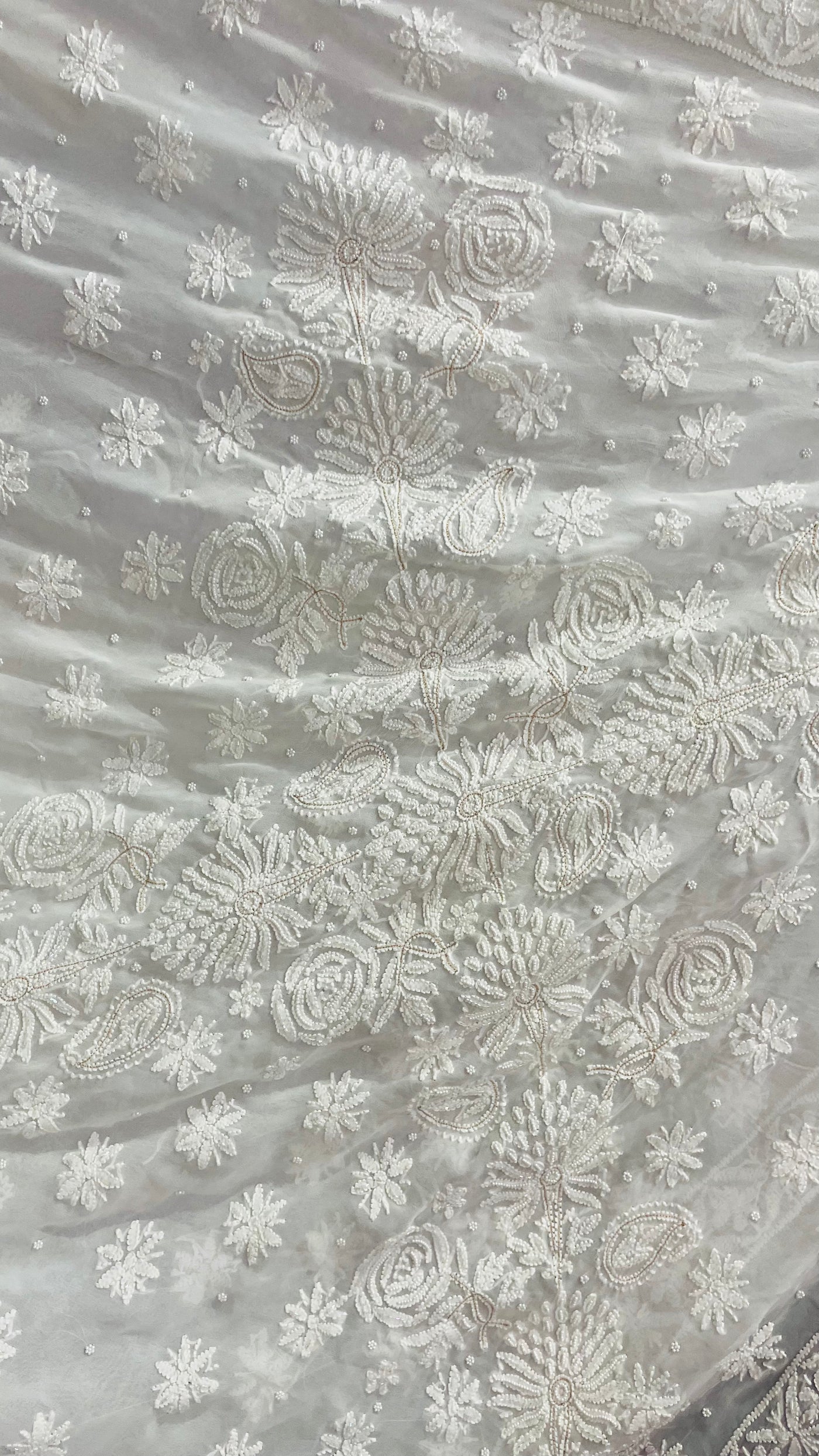 Type of Work: Handmade chikankari with pearl, sequins & cardana add-ons